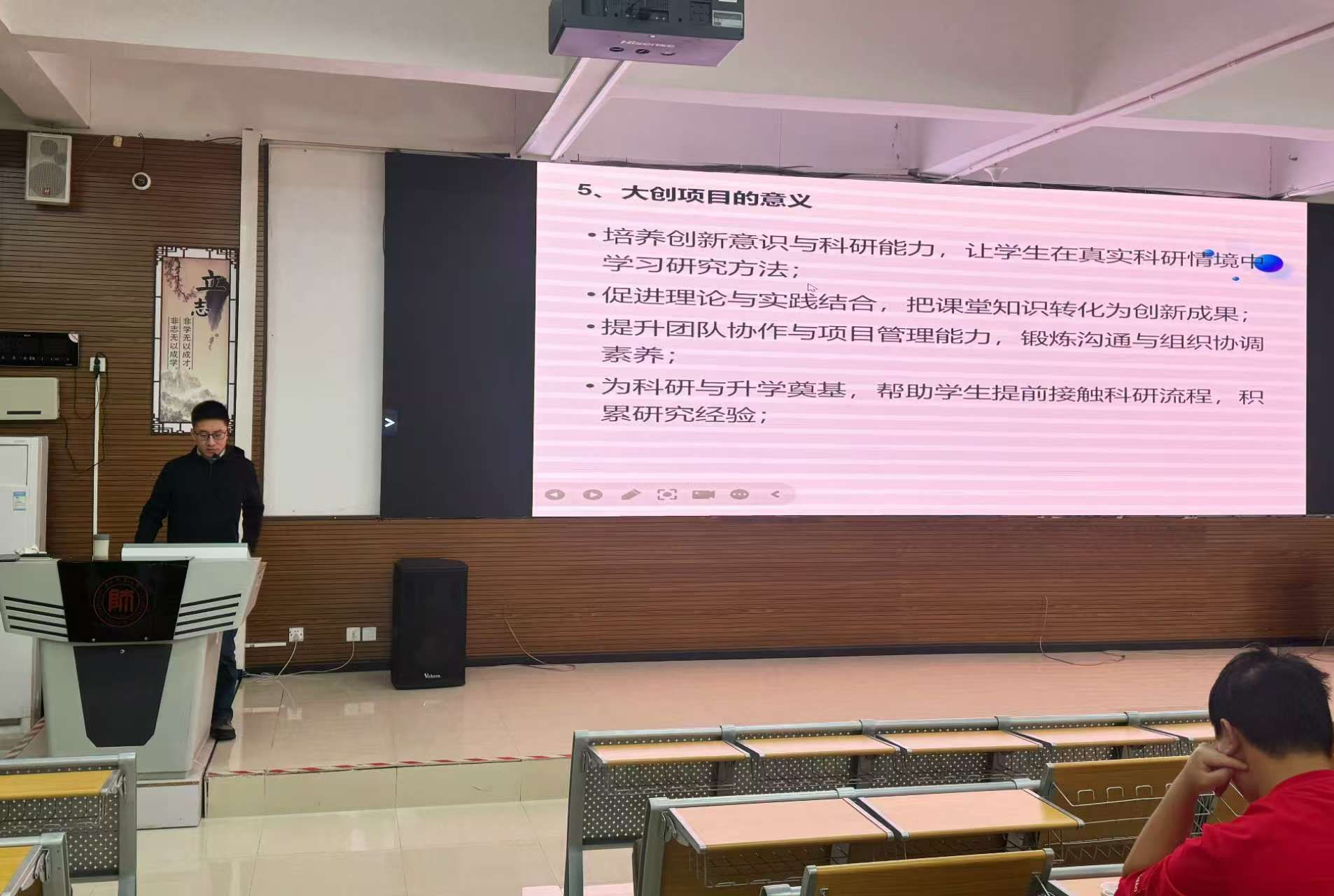 10月28日上午,2023级、2024级应用心理学全体同学在GJ6201教室参加创新创业项目申报指导会,高旭亮老师为同学们传经送宝。高旭亮围绕创新创业项目的类别层次、申报条件、成果呈现形式及核心意义四大核心内容展开讲解,通过实例分析为同学们提供实操参考,强调材料准备与团队组建的关键要求。指导会清晰阐释了大创项目在培养创新意识、科研能力、团队协作素养等方面的重要价值,为同学们升学与职业发展积累经验。同学们认真记录、积极互动,纷纷表示将把所学运用到实际申报中,主动投身双创实践。