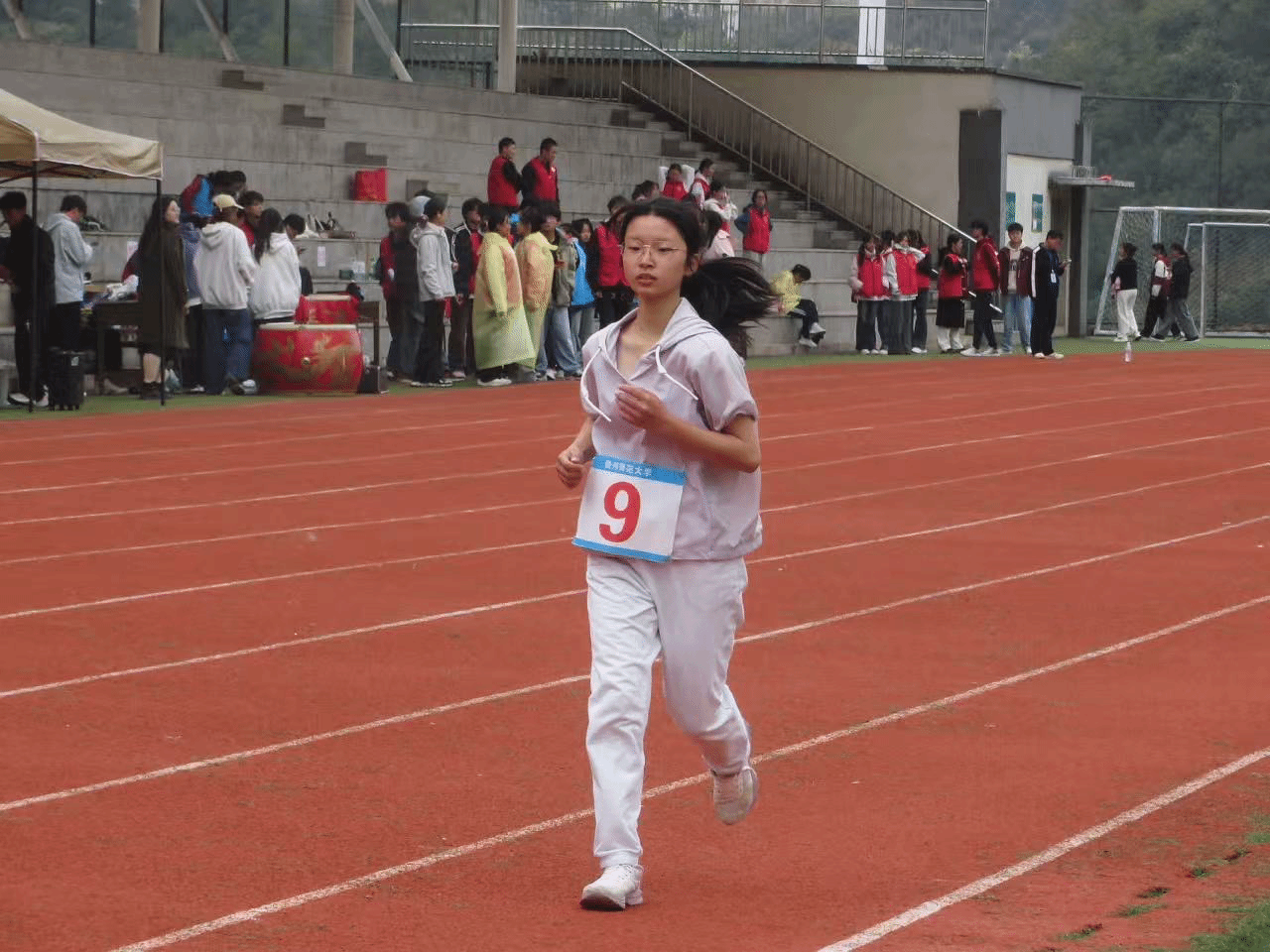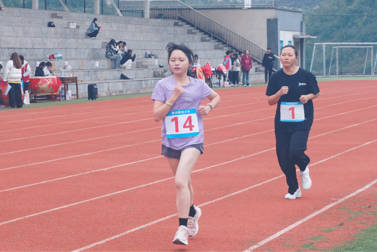 个人赛事亮点集中在长跑项目。在女子5000米比赛中,25级发展与教育心理学专业的廖梦萍同学,中途出现身体不适后仍咬牙坚持,凭借顽强意志跑完全程,生动诠释了“不抛弃、不放弃”的体育精神;25级心理学专业的杨滨依同学在女子1500米赛道上奋勇争先,最终斩获八强佳绩,展现了扎实的竞技实力。