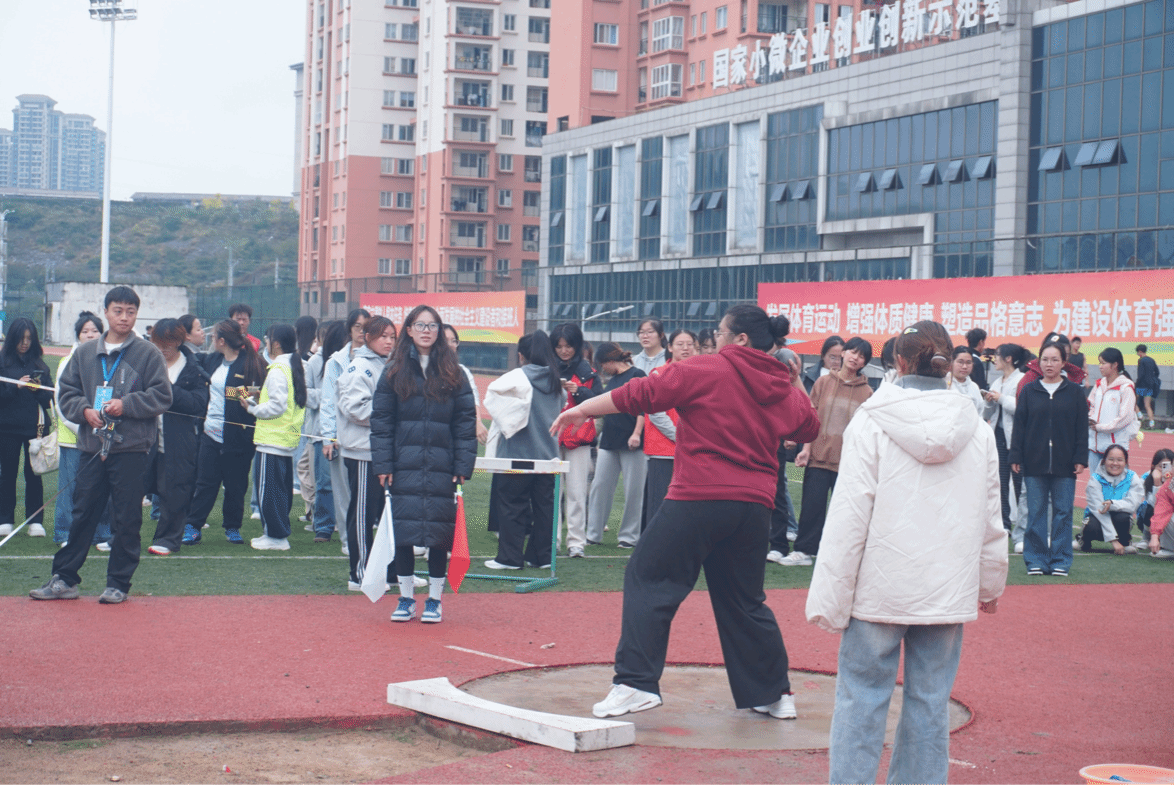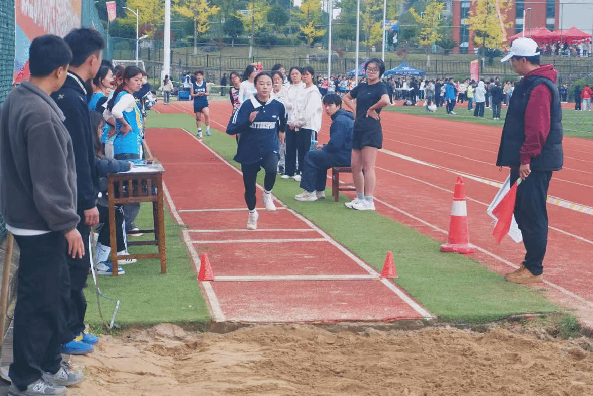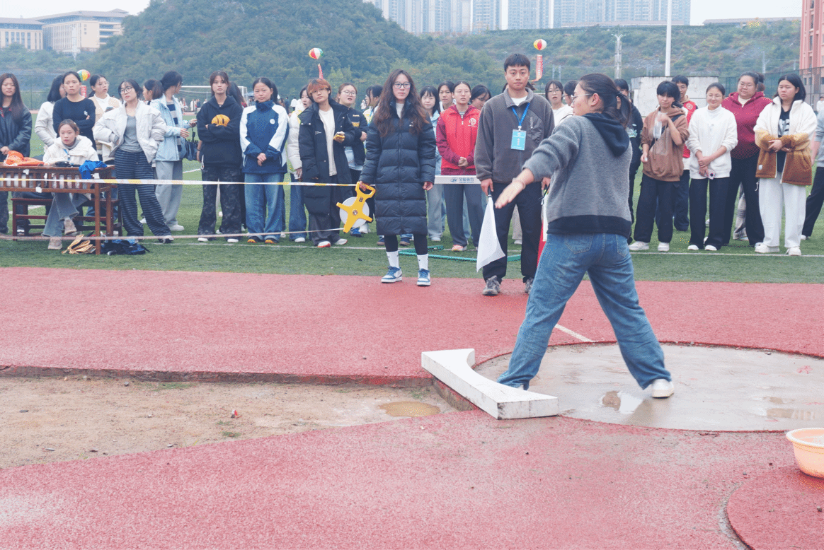 比赛期间,东校区运动场彩旗招展,呐喊声、加油声此起彼伏,现场氛围热烈高涨。我院参赛运动员精神抖擞、斗志昂扬,在田赛场上精准完成每一次投掷与跳跃,在径赛赛道上全力冲刺、奋勇争先,对待每个项目都严谨认真,用汗水诠释了青春的活力与坚韧不拔的毅力。