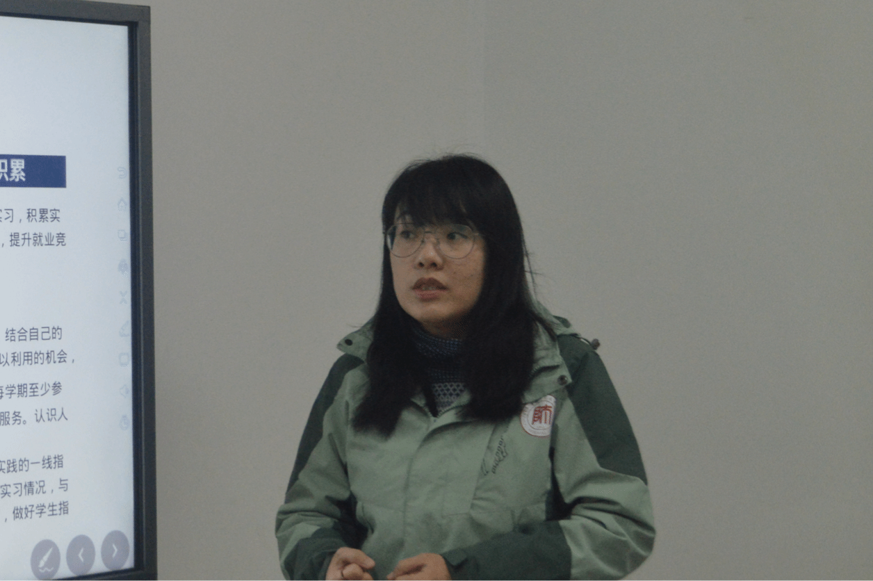 随后,2021级本科生辅导员高阳老师围绕2025届本科生就业情况作详细汇报。她从就业前期准备的统筹推进、本科生就业率的具体数据呈现、当前就业工作中存在的实际难题三个维度,全面梳理本科生就业工作的亮点与短板,为后续优化帮扶策略提供了清晰依据。