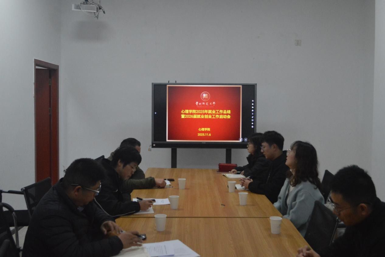 为系统复盘2025届毕业生就业工作成效,精准部署2026届就业创业重点任务,2025年11月6日上午9:00,心理学院在二楼会议室召开2025年就业工作总结暨2026届就业创业工作启动会。学院党委书记李凤、党委副书记苏醒、副院长陈维、学院办公室主任裴子钊、教学管理科科长盖磊、全体辅导员及2026届毕业班班主任参会,会议由苏醒主持。