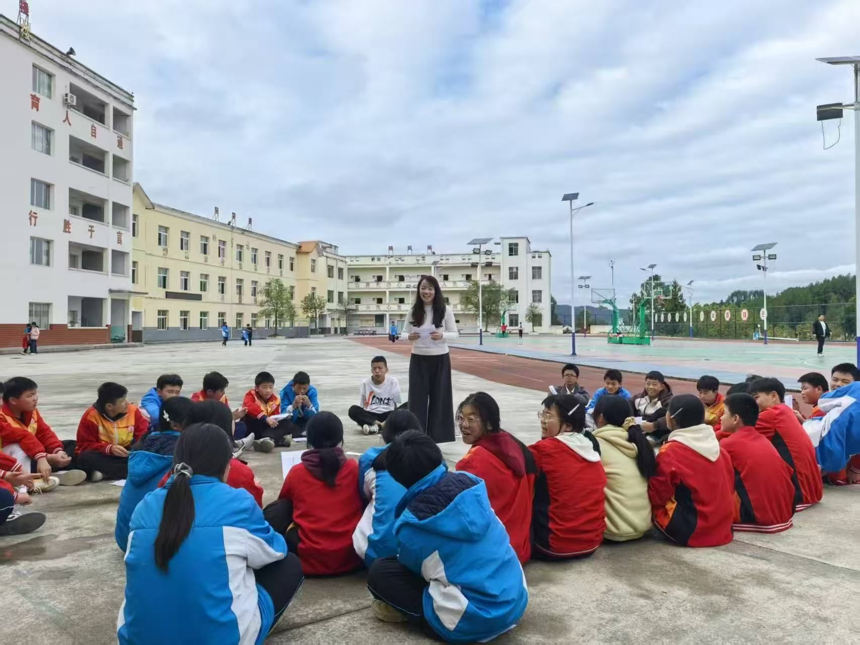 最后,我院心理健康教育与咨询中心党员老师走进龙井中学,为107名中学生开展别开生面的团体心理健康辅导。通过活动为龙井中学的孩子们提供安全有效的情绪宣泄渠道和互助支持平台,不仅缓解部分学生心理压力,更在他们心中播下关爱自我、乐于助人的种子,为其阳光成长注入“心”能量。