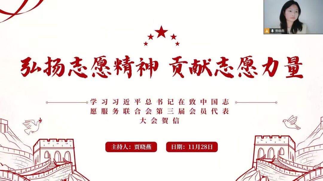 为深入学习大会精神及总书记贺信核心要义,助力健全志愿服务体系、明晰事业高质量发展要求,心理学院青年志愿者分会于2025年11月28日晚线上召开主题学习交流会,青分会全体成员、研会组织部及各班青联委员参会,其余志愿者同步开展自主学习。