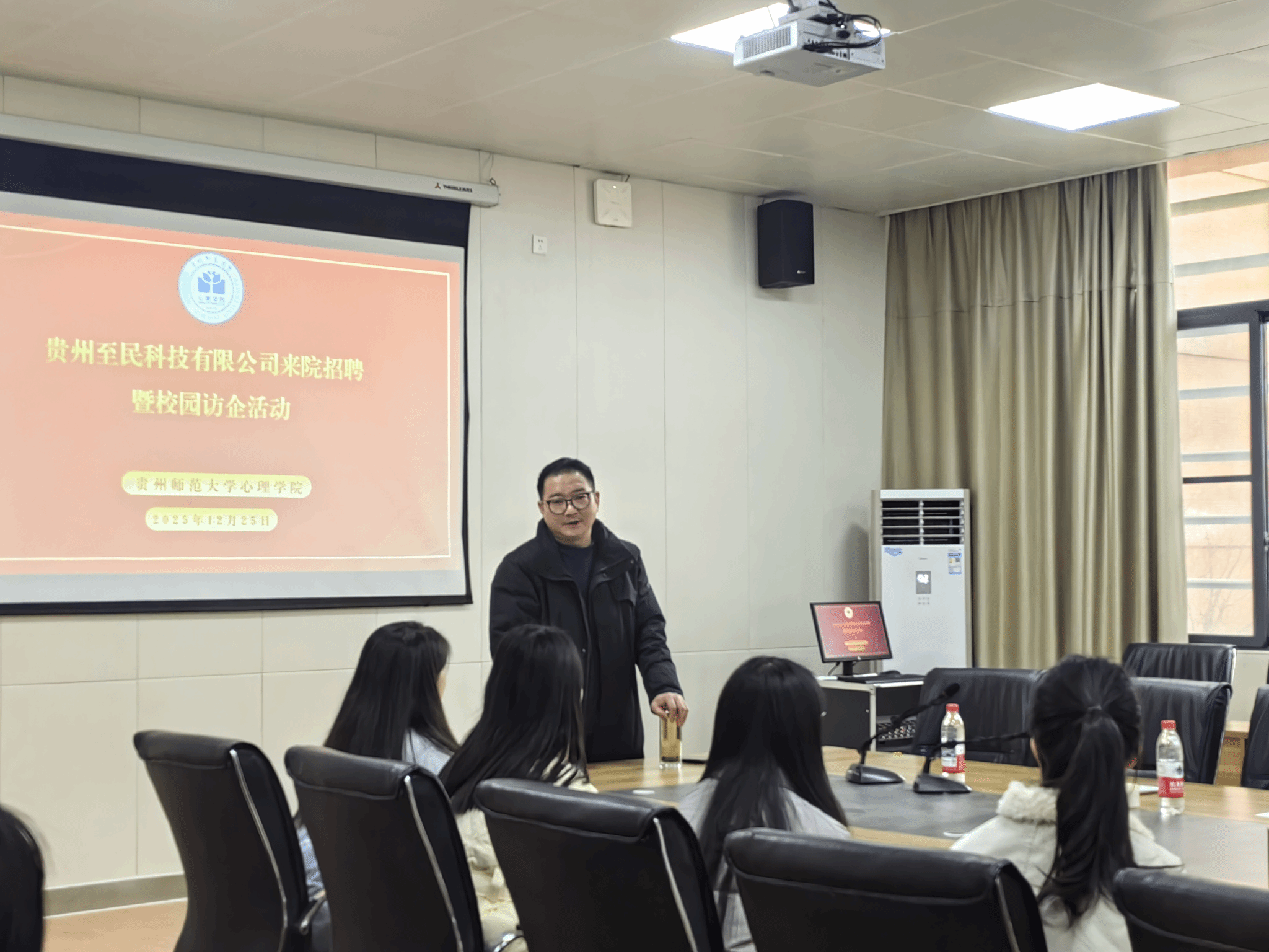为扎实推进2026届毕业生就业工作,搭建校企人才对接桥梁,12月25日下午,心理学院于核磁楼301会议室成功举办贵州至民科技有限公司校园招聘暨访企活动,为应届毕业生送上精准就业服务。