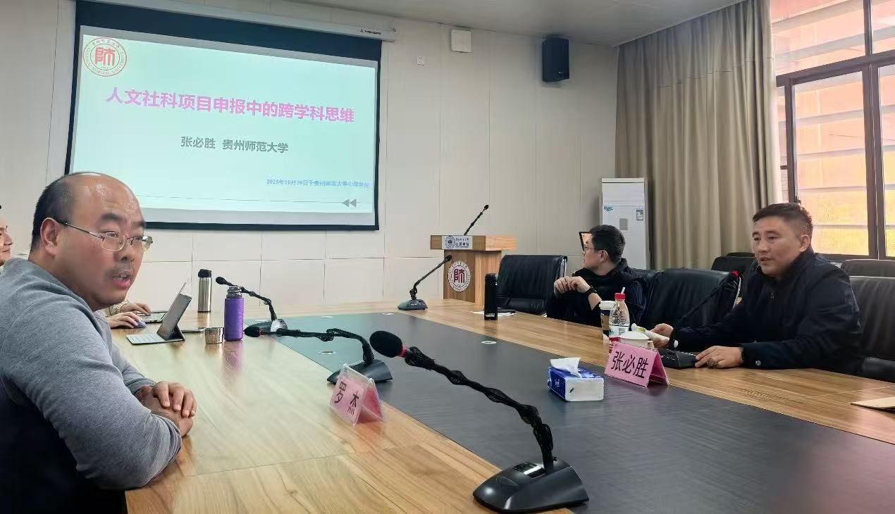 为做好2026年度人文社科项目申报工作,切实提高申报质量,心理学院于2025年10月30日举办专题学术讲座,特邀我校张必胜教授作题为“人文社科项目申报中的跨学科思维”的专题报告。学院党委副书记苏醒、副院长陈维、副院长罗杰及拟申报人文社科项目的教师参加了讲座。