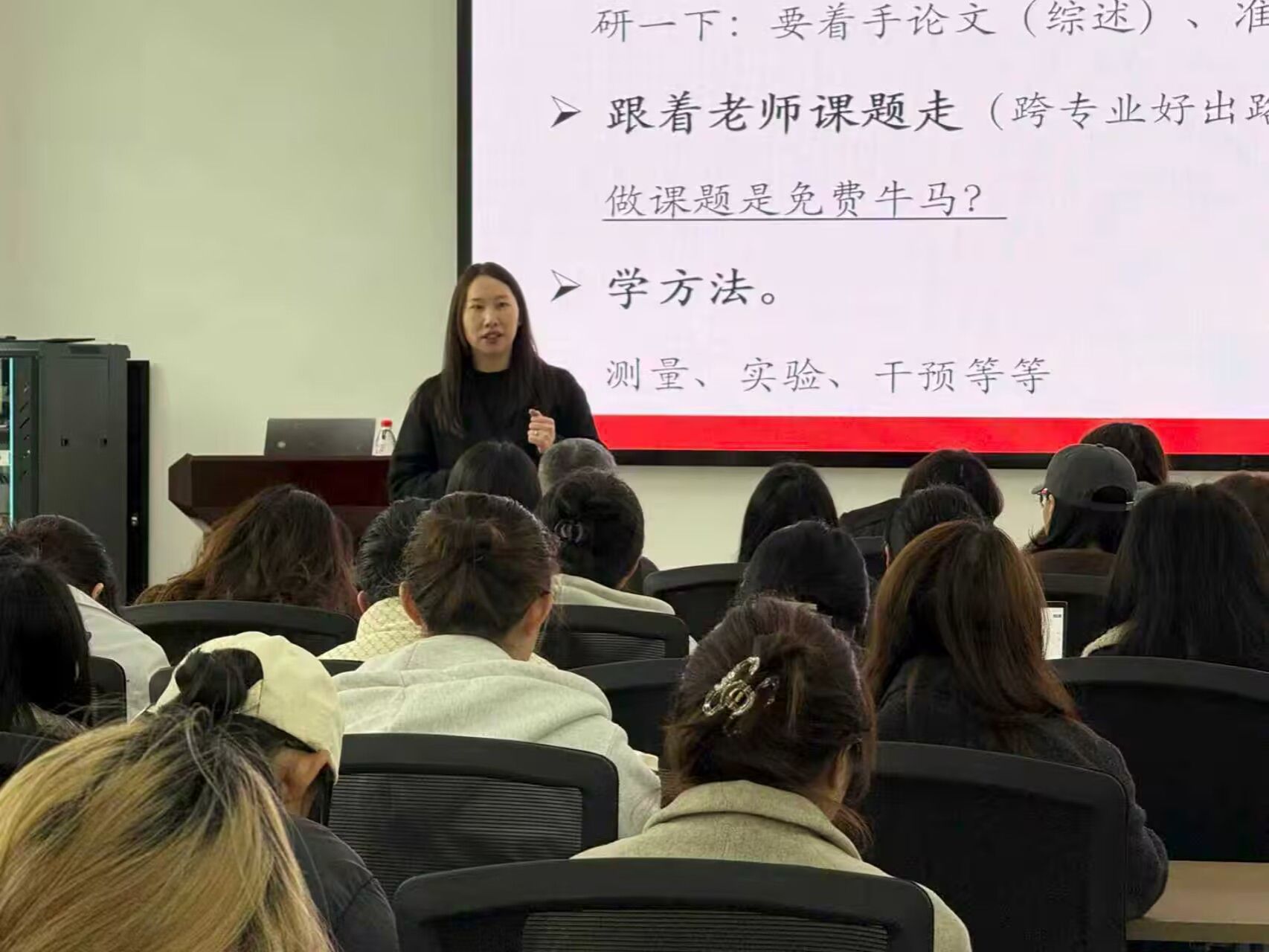 分享环节,张胜洪以《我与心理学共处的27年》为题,用“信心、爱心、恒心”诠释心理从业者应有的初心和素养,他结合经典案例和专业理论反复强调终身学习、直面挑战的重要性,殷殷寄语学子坚守心理育人的初心;曾冬平则从师弟师妹视角出发,细致拆解读研各阶段学习要点,清晰点明学术研究对职业发展的坚实支撑作用,还贴心梳理了中小学心理教师、AI心理测验师等多元就业方向,毫无保留分享了课程备课、个案咨询等实用技能,更暖心提醒同学们提前考取相关证书,为未来职业发展增添竞争力。
