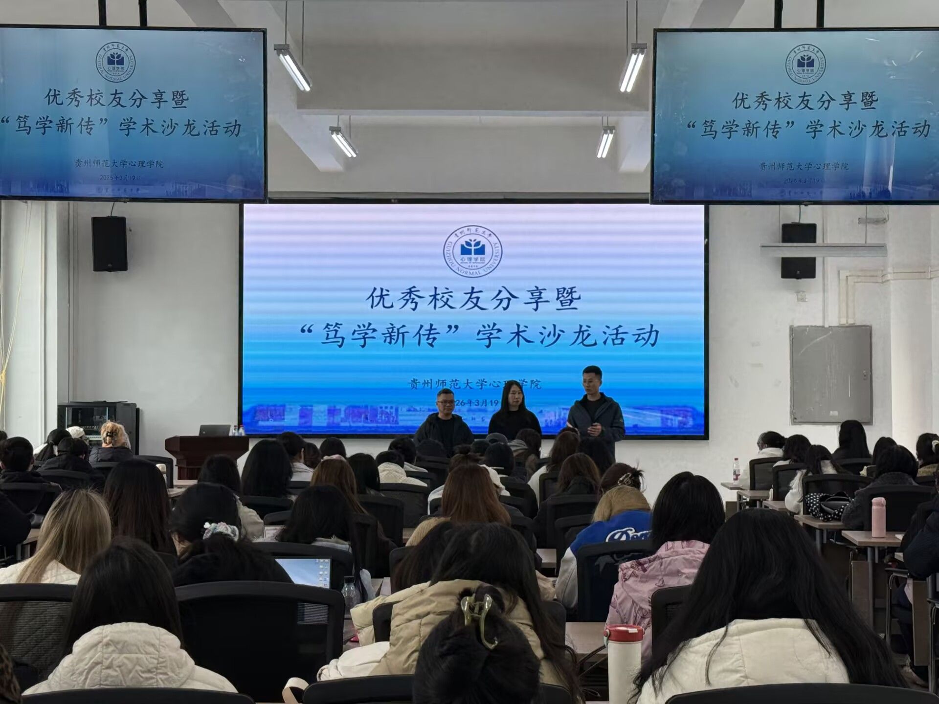 时值学校举办“情系母校传薪火,携手奋进筑未来”校友专场系列活动之际。3月19日,心理学院举办优秀校友分享暨“笃学心传”学术沙龙活动,特邀张胜洪、曾冬平两位心理学博士优秀校友倾情分享,为全体研究生明晰学业发展方向、做好职业规划送上干货满满的专业指导,助力大家夯实专业学习根基、提升实践应用能力。